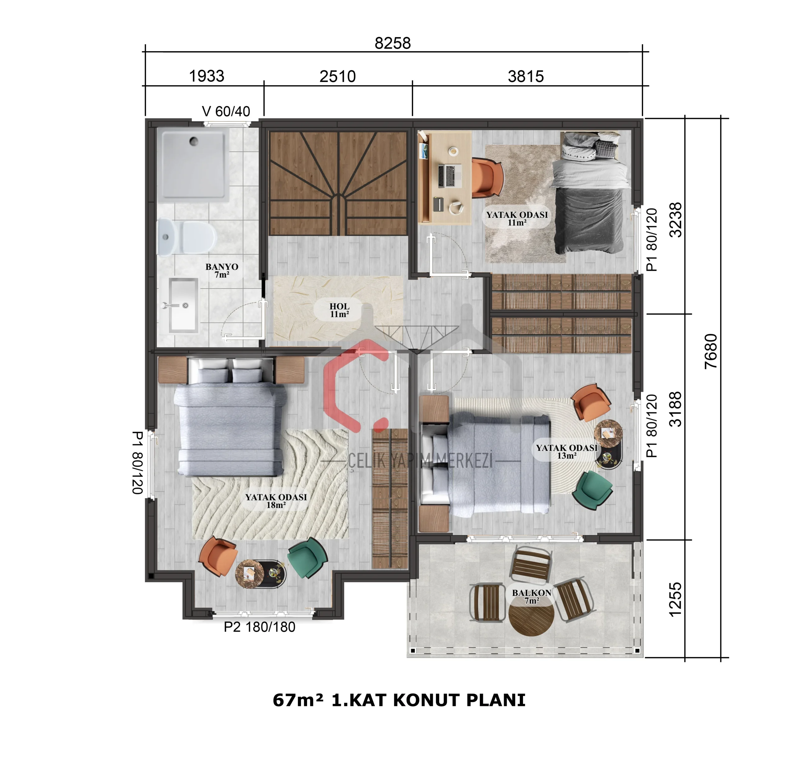 Çelik Yapım Merkezinin villa seriyasının bir hissəsi olan bu 4+1 iki mərtəbəli prefabrik villa, müasir memarlığı zəlzələyə davamlı polad konstruksiya texnologiyası ilə birləşdirir.