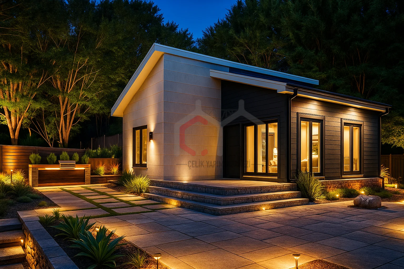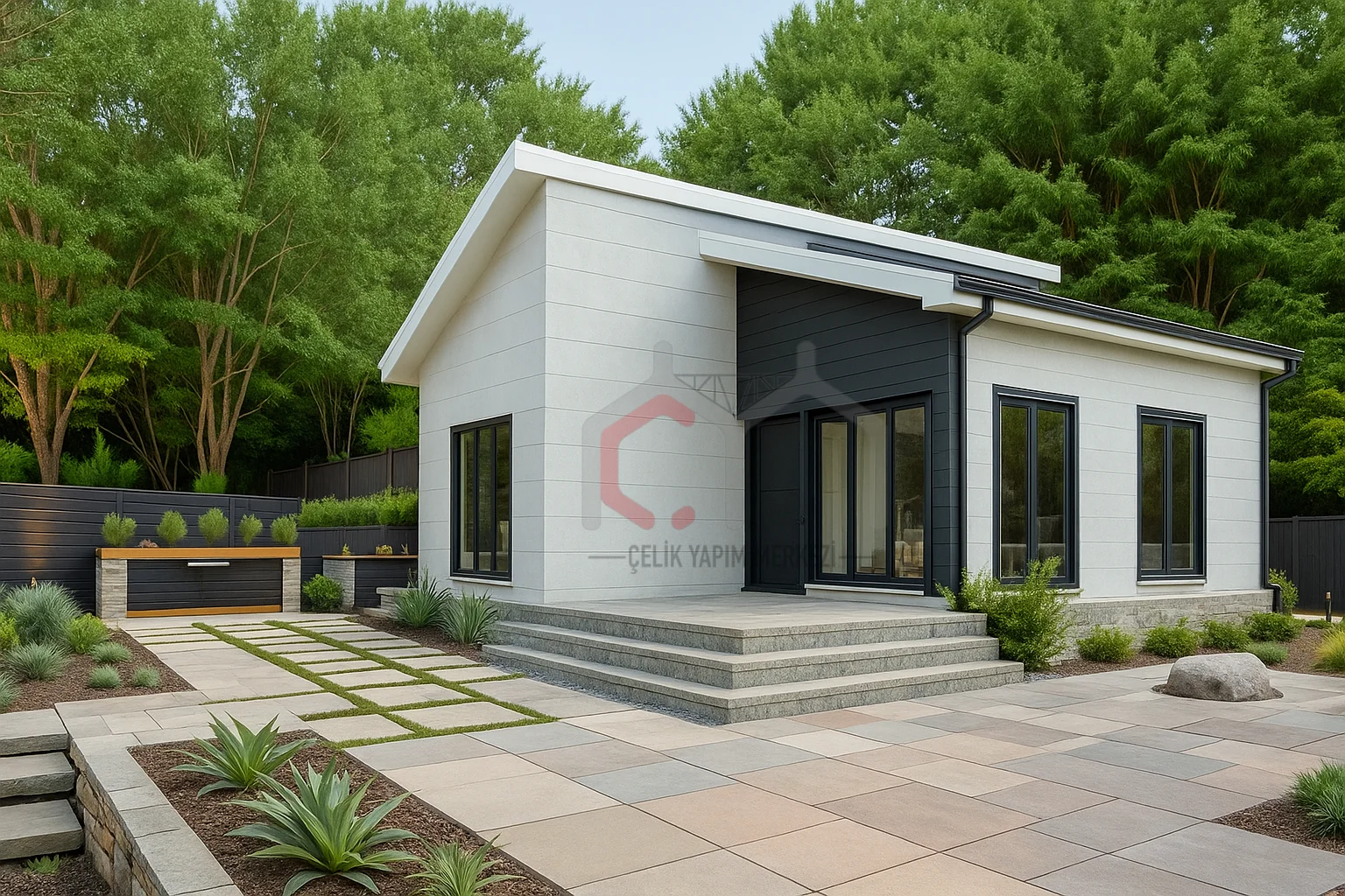Çelik Yapım Mərkəzi tərəfindən istehsal olunan bu 2+1 tək mərtəbəli prefabrik villa modeli kiçik kvadrat metrlərdə maksimum səmərəlilik təklif edir. Həm yay iqamətgahı, həm də daimi yaşayış üçün ideal olan bu villa enerjiyə qənaət edən tikinti materialları ilə inşa edilib və müasir həyat standartlarına uyğundur.