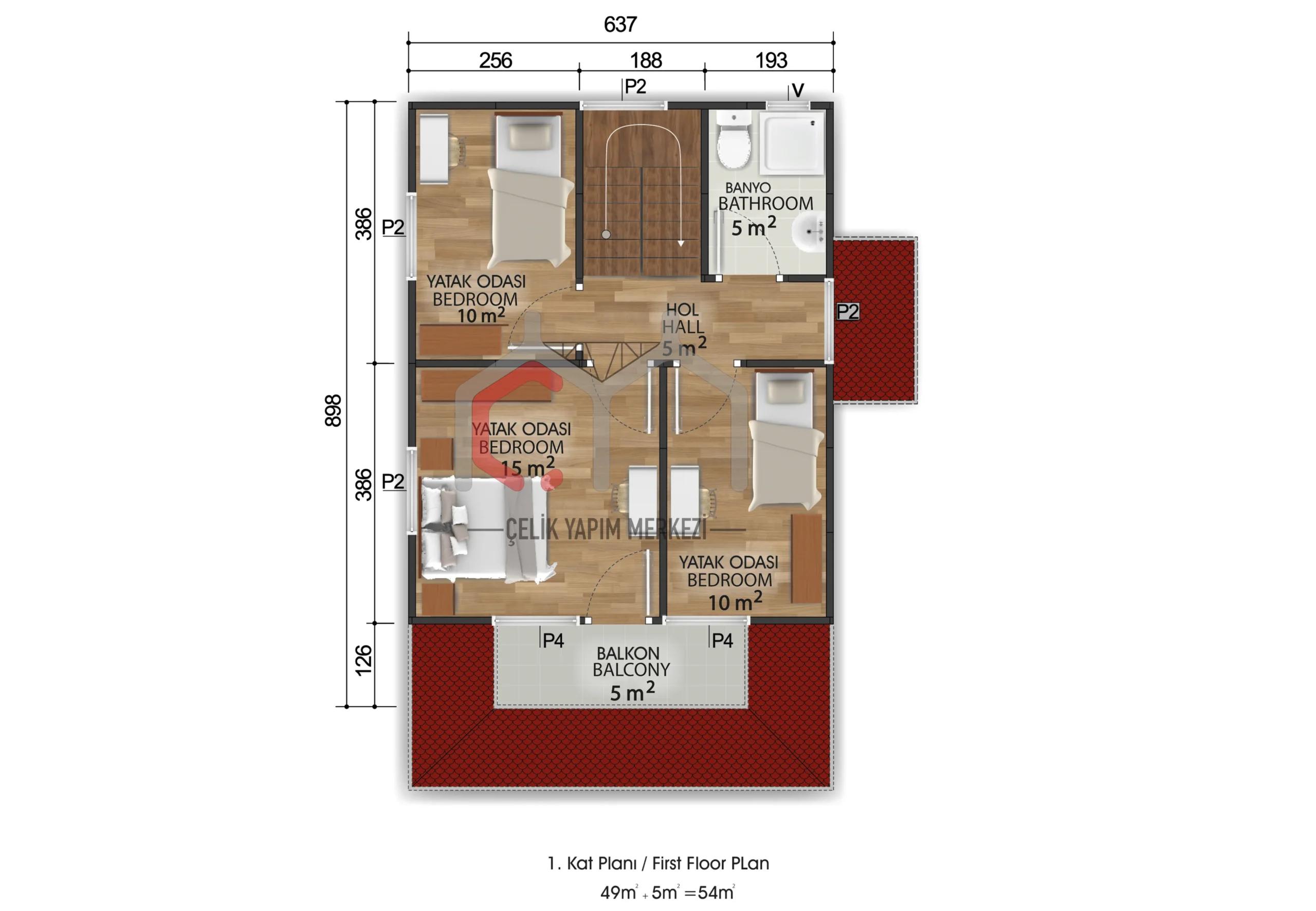 2+1 İki Mərtəbəli Prefabrik Ev 82 m2