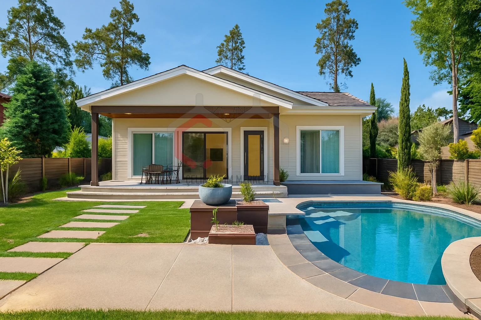 135 m2 sahəsi olan tək mərtəbəli prefabrik villa ilə geniş və rahat yaşayış