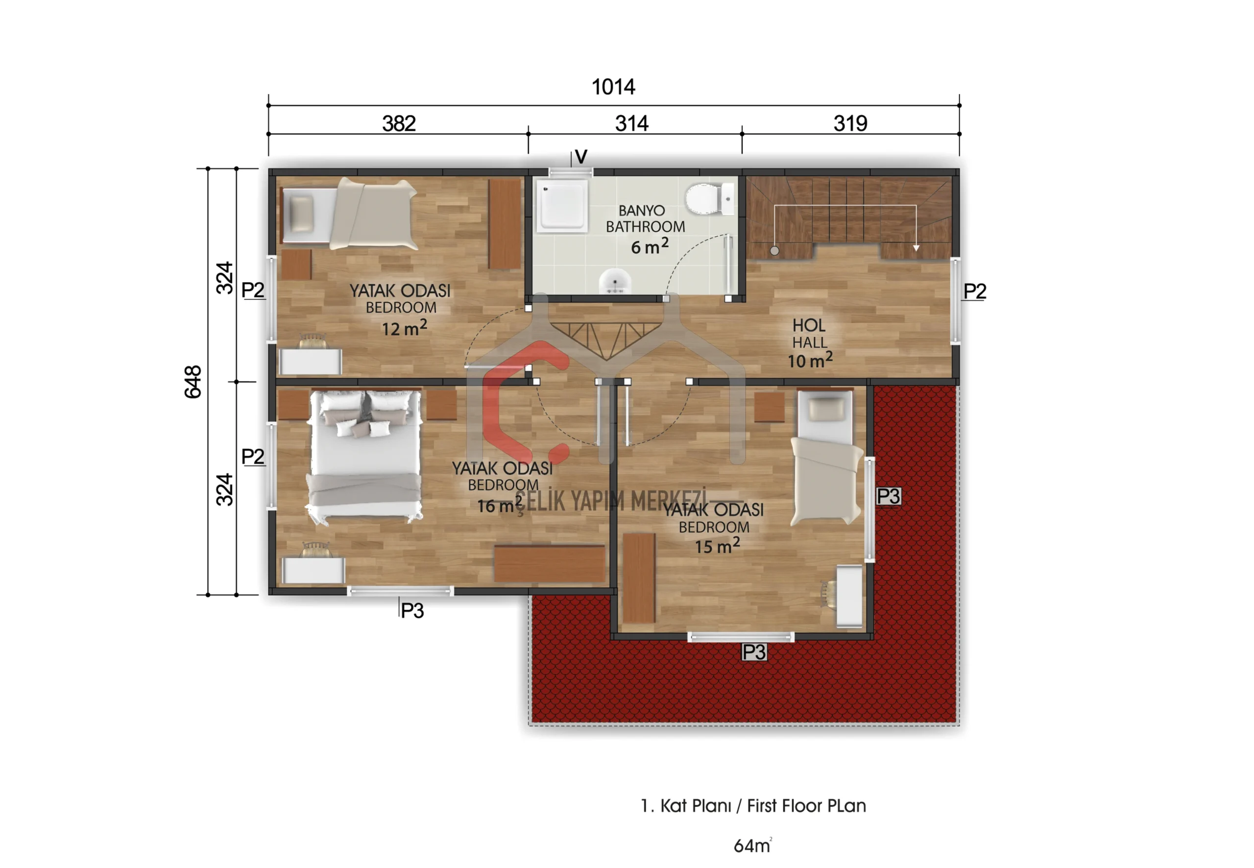 2+1 İki Mərtəbəli Prefabrik Ev 100 m2